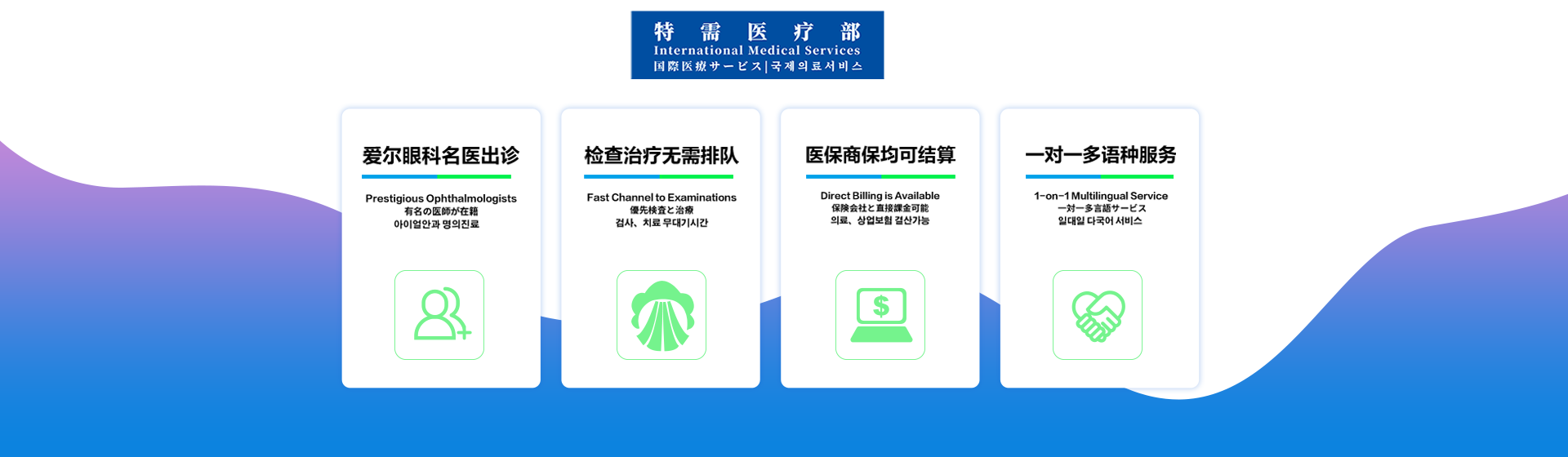 致力于為廣大旅居在上海的有包括支付方式、語言支持、疑難眼病等特需需求的國內(nèi)外客戶提供高品質(zhì)的眼科醫(yī)療、醫(yī)美服務。